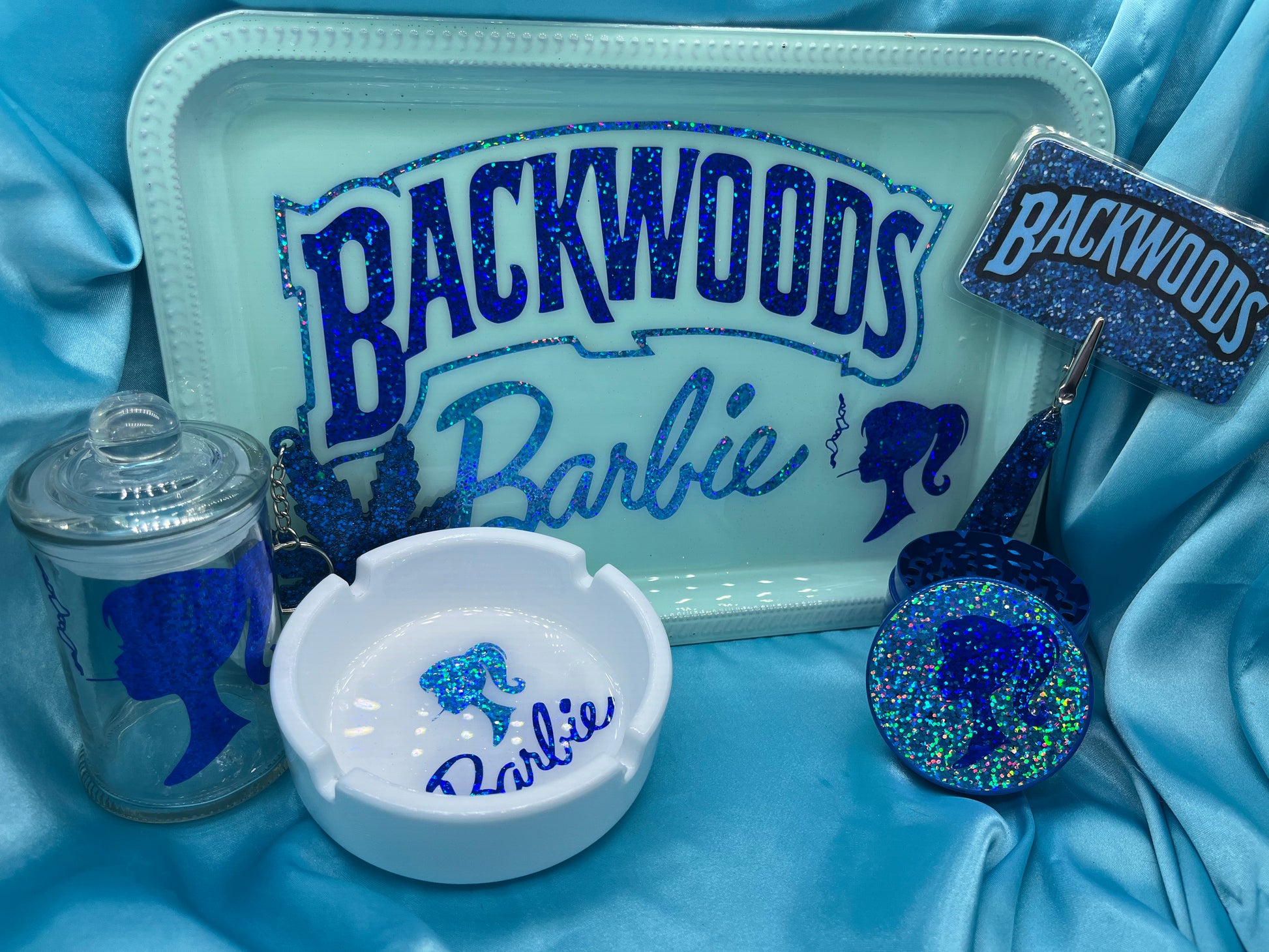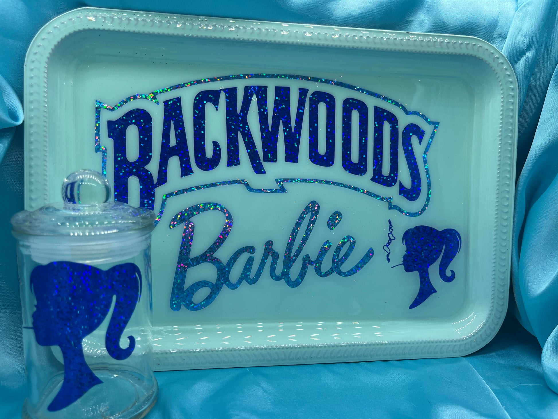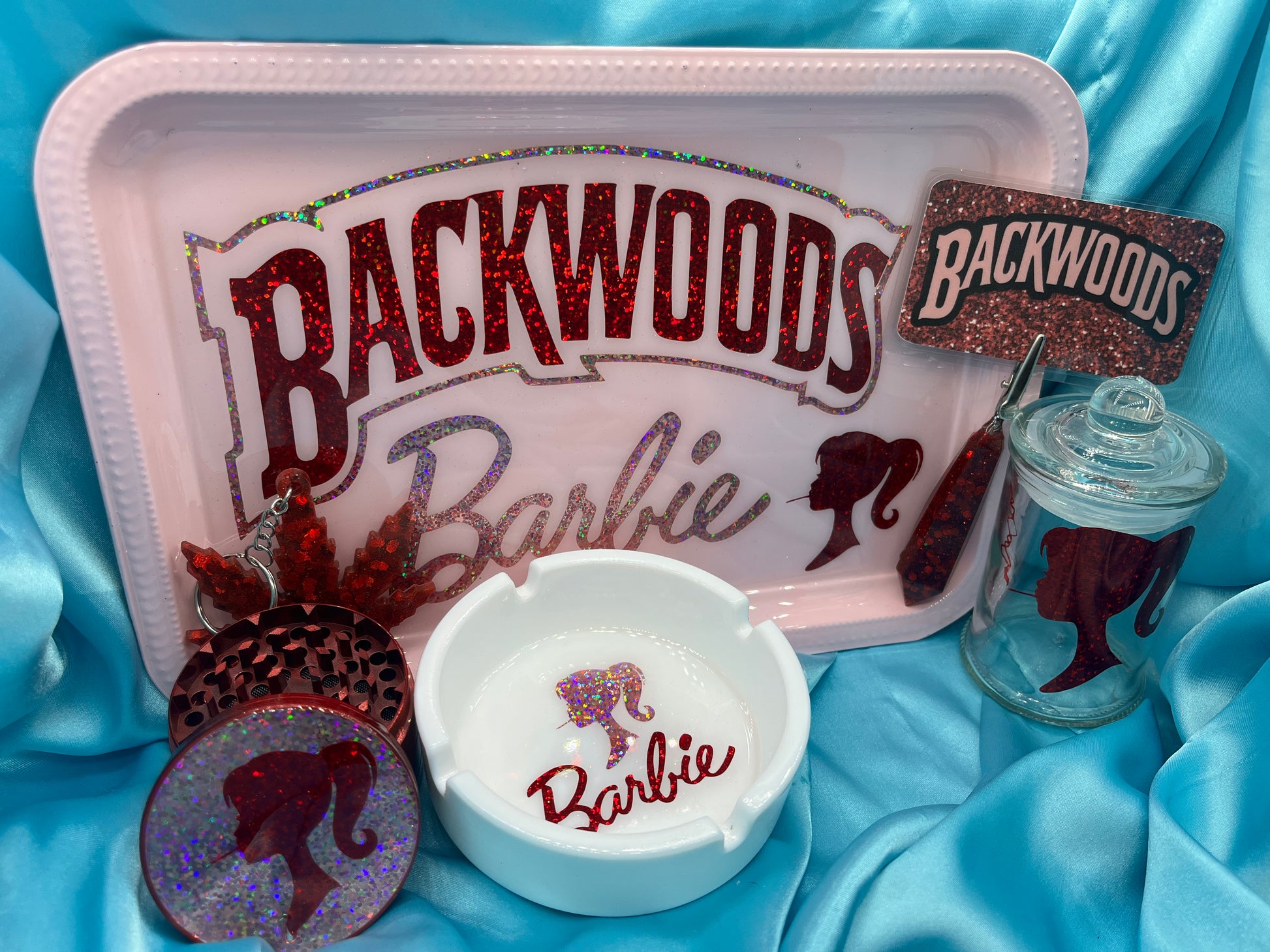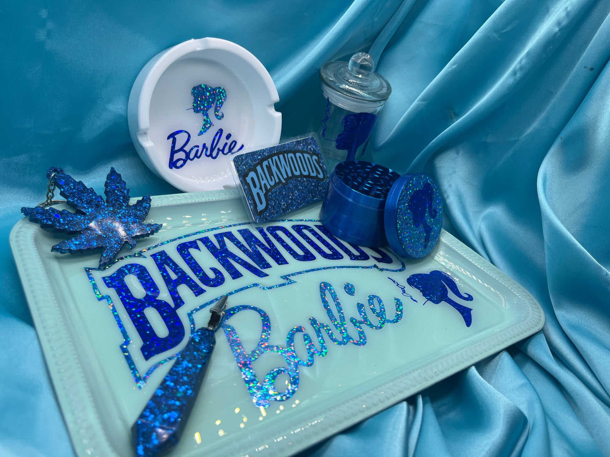 The rolling trays are metal trays that have been decorated by hand with glitter/paint and sealed with FDA approved resin.