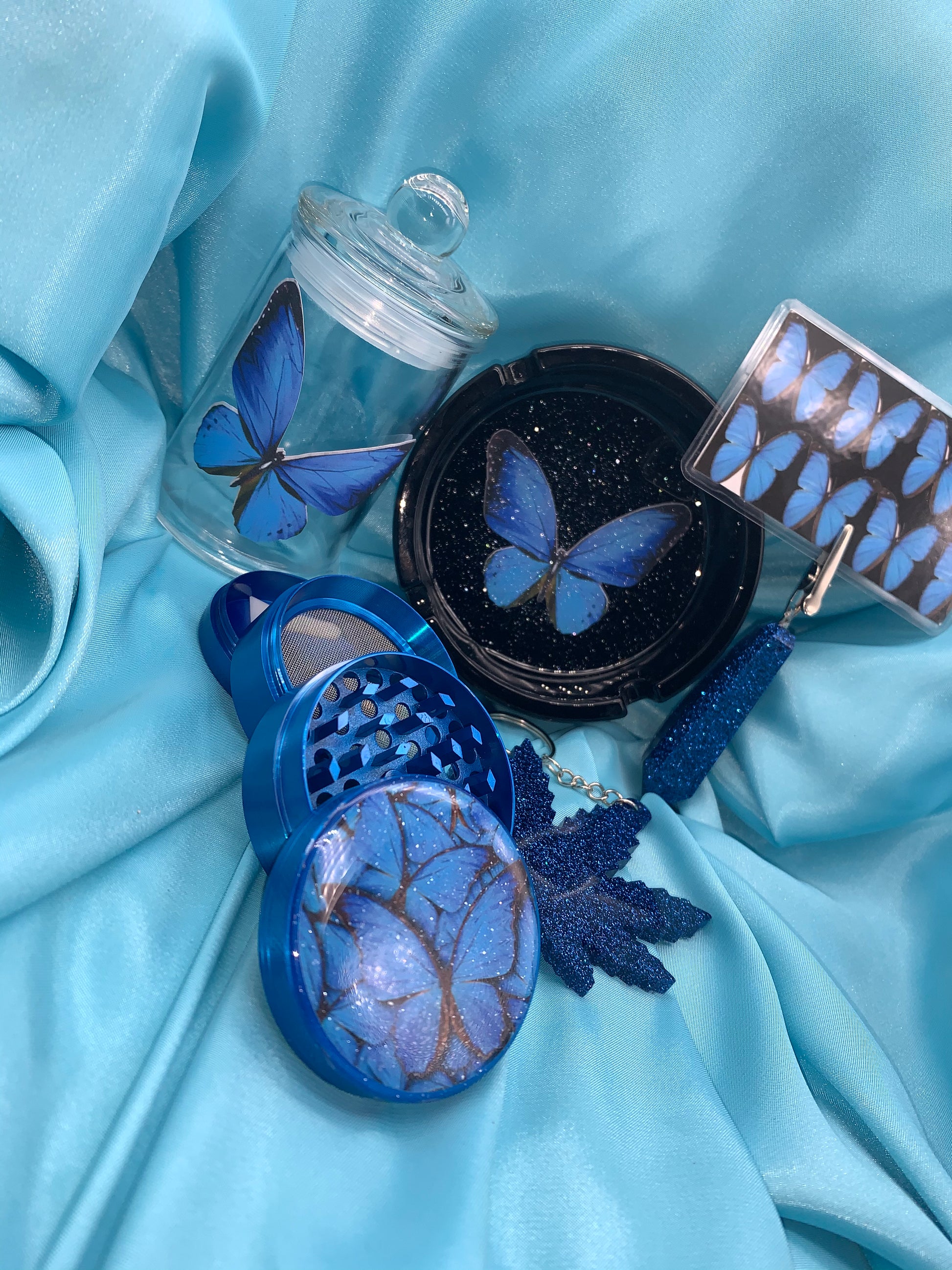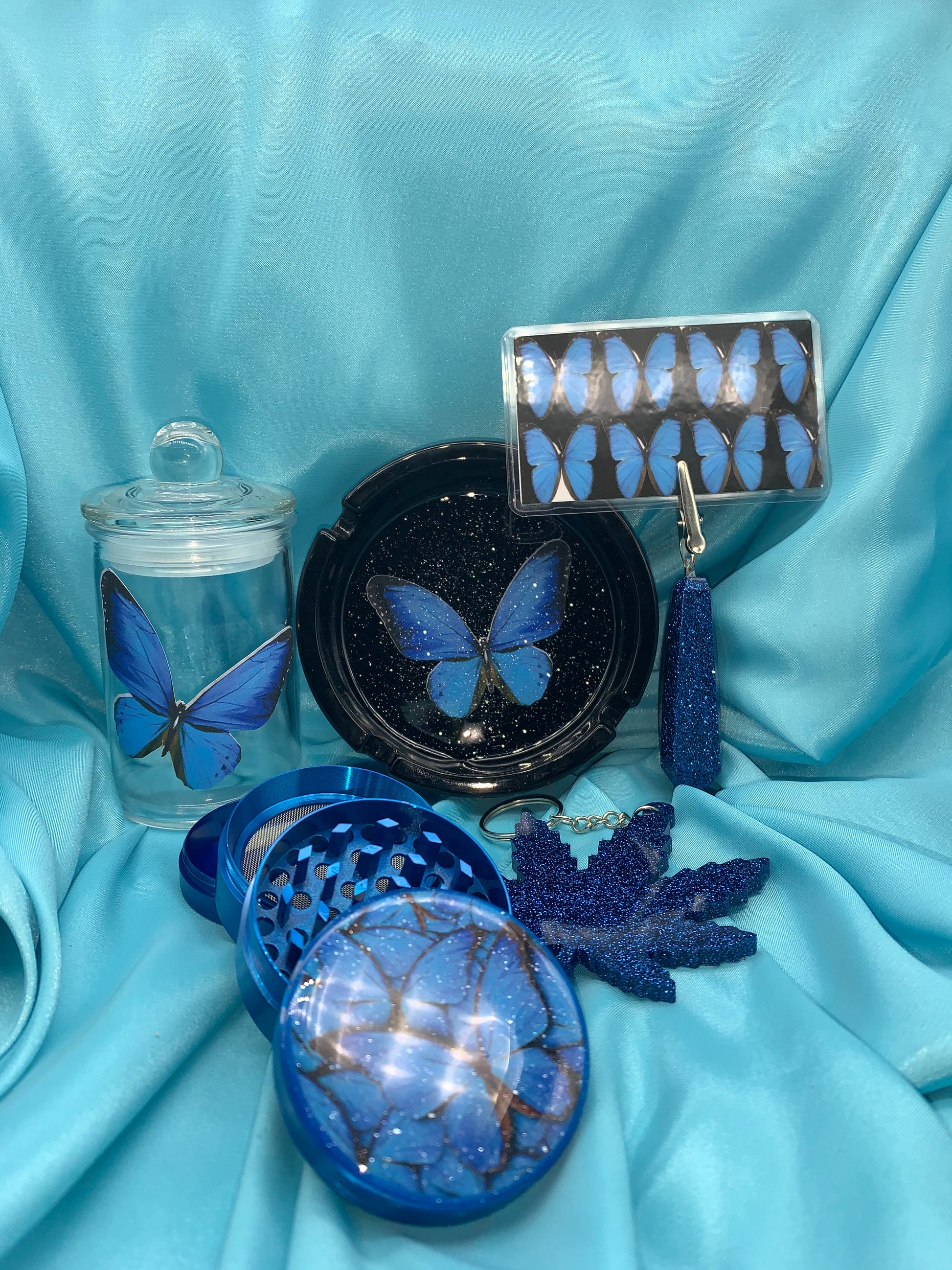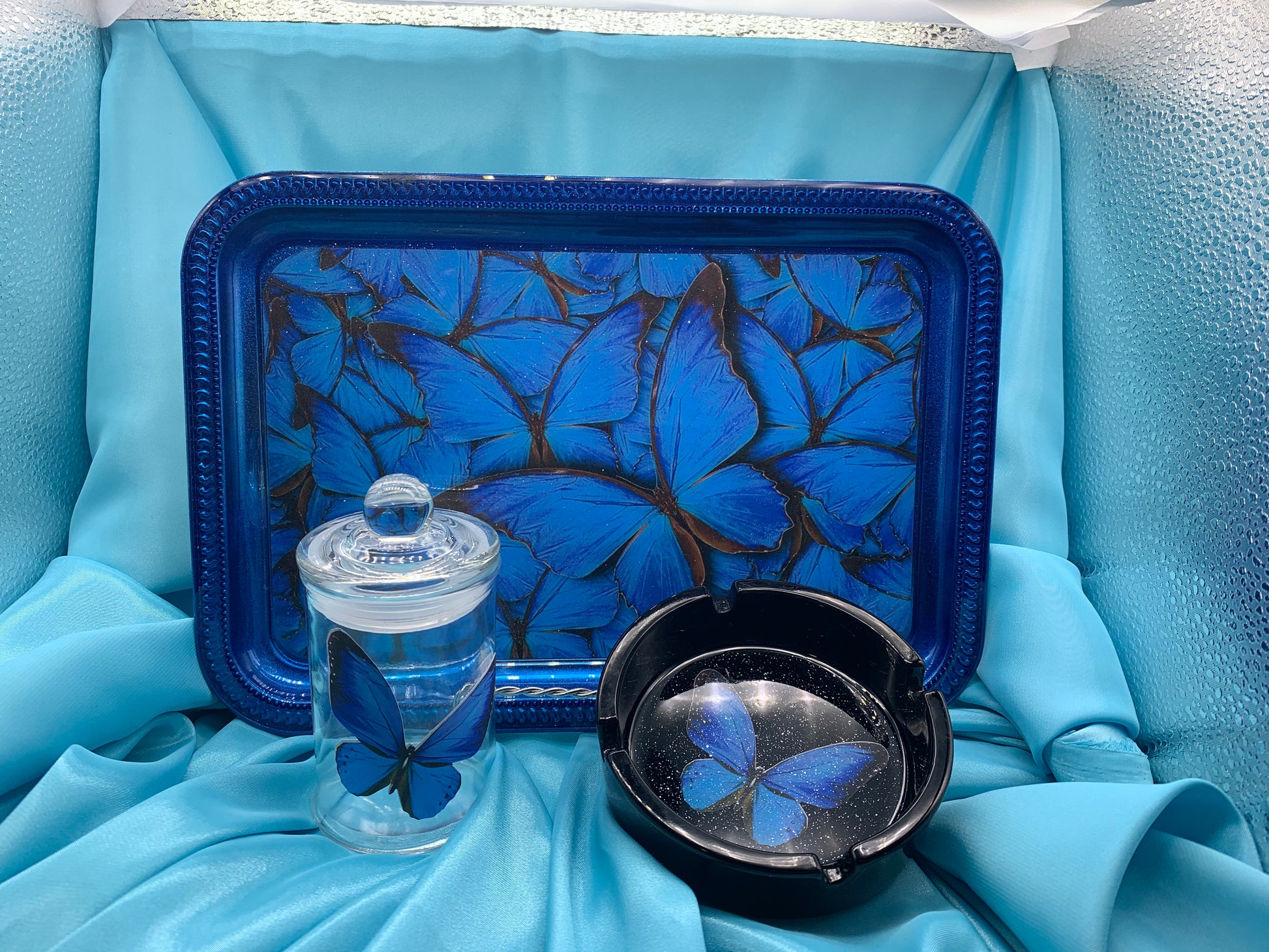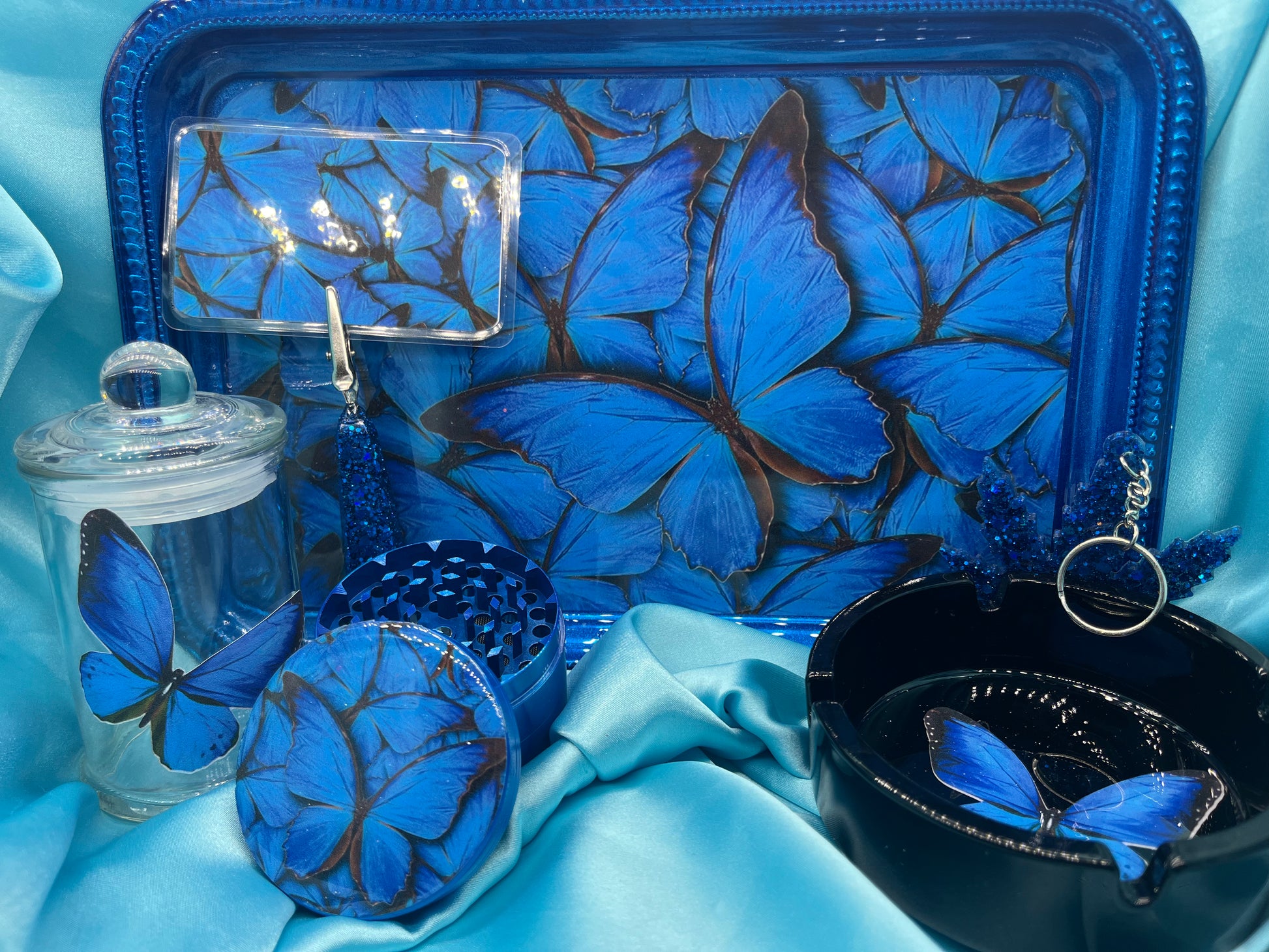 The rolling trays are metal trays that have been decorated by hand with glitter/paint and sealed with FDA approved resin.